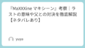 特にロッカーの数字は、倉庫のベルトコンベアの速度や耐荷重を示す現場の言葉でありながら、同時に山崎の悲鳴そのものだったと読めます。2.7m/sで流れるライン、70kgという重量、そして0。これは単なる業務メモではなく、「この流れを止めたい」「ゼロに戻したい」という、言葉にならなかったSOSなのではないでしょうか。CMの「FAUST」という表記も、便利さと引き換えに魂を差し出す契約を思わせ、本作の企業批判を象徴しています。伏線は謎解きのためだけでなく、この作品のテーマを可視化する装置として機能しているのです。
