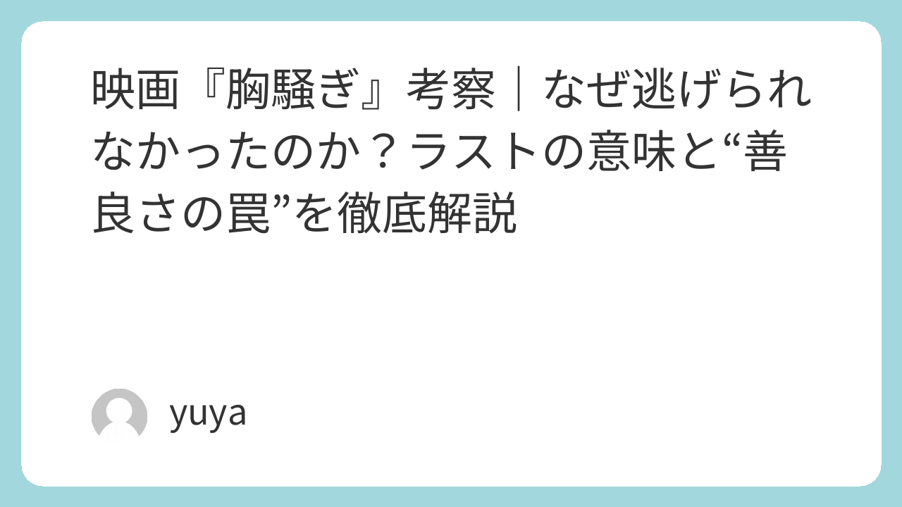 『胸騒ぎ』の本当の怖さは、異常な相手そのものよりも、違和感を覚えながらも関係を壊せず、相手に合わせてしまう私たち自身の心理にあります。