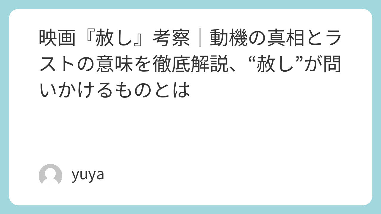 ブログ記事として締めるなら、『赦し』は“赦すことの美しさ”を描いた作品ではなく、“赦しを求めずにはいられないほど壊れてしまった人間たち”の物語だ、とまとめると本作の本質に近いはずです。簡単には許せない、でも憎み続けても救われない。そのどうしようもない現実を突きつけるからこそ、『赦し』は観る者の心に長く残る映画なのです。