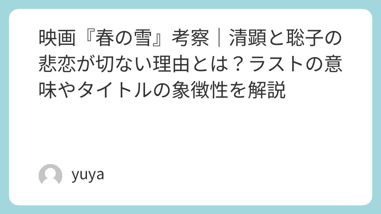 同時に本作は、美しいものほど永遠には保てないという、残酷でありながらも詩的な真実も示しています。だからこそ『春の雪』は観終わったあと、幸福感よりも喪失感が強く残る作品です。しかしその喪失感こそが、この映画の価値でもあります。見ている最中に心を満たす物語ではなく、見終わったあとに静かに胸へ降り積もる物語。それが『春の雪』という作品の、いちばん大きな魅力なのではないでしょうか。