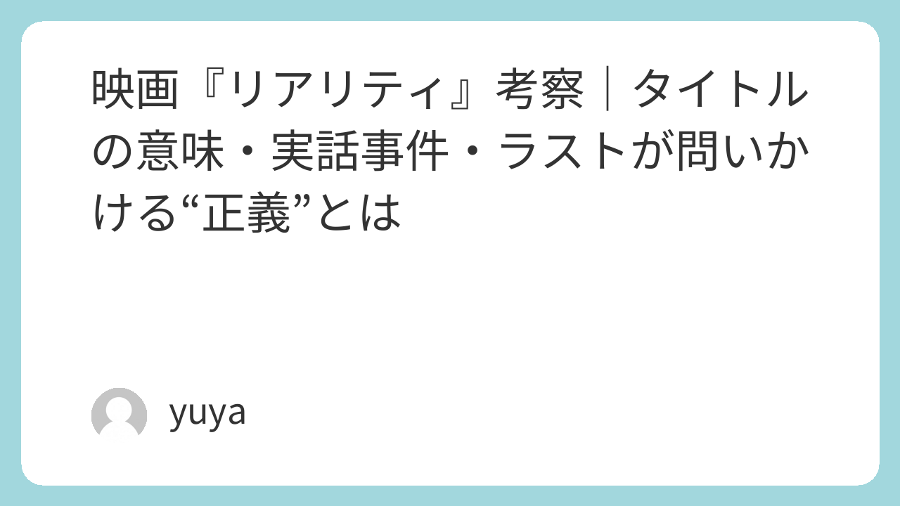 また、『リアリティ』というタイトルそのものにも、この映画の本質を示す重要な意味が込められています。