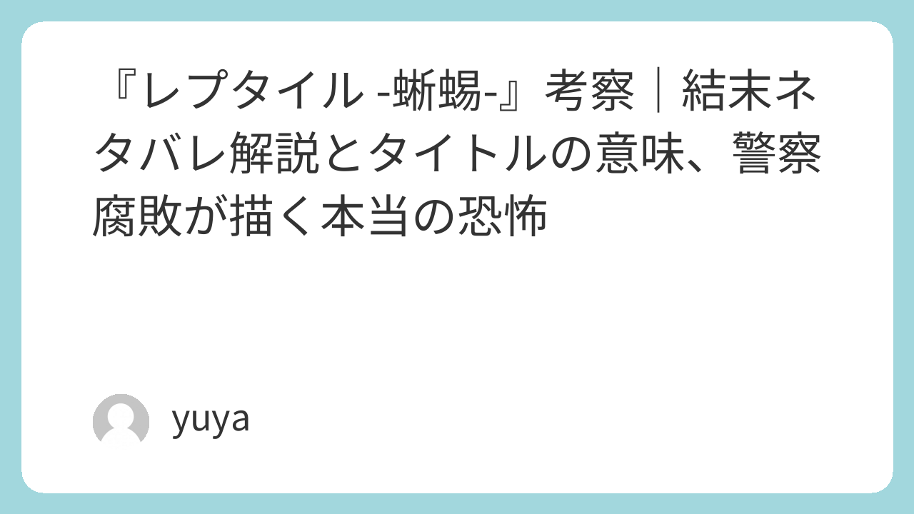 この記事では、『レプタイル -蜥蜴-』の結末をネタバレありで整理しながら、真犯人の構造、タイトルの意味、ラストの余韻についてわかりやすく考察していきます。