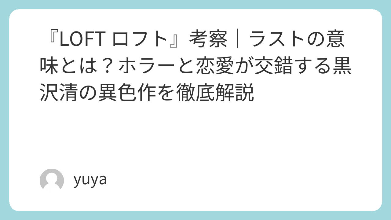 この記事では、『LOFT ロフト』のあらすじや作品構造を整理しながら、タイトルの意味、ホラーと恋愛が交差するテーマ性、そして印象的なラストシーンまで詳しく考察していきます。