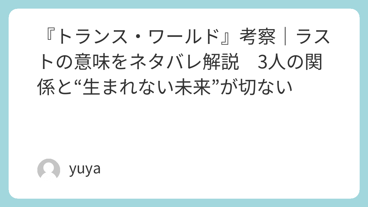 『トランス・ワールド』考察|ラストの意味をネタバレ解説 3人の関係と“生まれない未来”が切ない