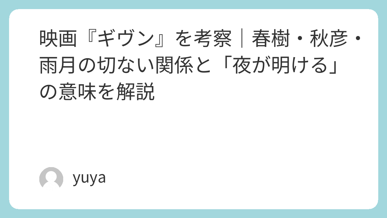 「夜が明ける」という言葉は、一見すると希望に満ちたフレーズです。ですが『映画 ギヴン』における“夜”は、単に暗い時間ではなく、終われない関係、消えない未練、才能への劣等感、言えない本音が渦巻く時間そのものだと感じます。だからこのタイトルが意味するのは、「すべてうまくいく朝が来る」という甘い救いではありません。むしろ、苦しさが消えなくても、そこに区切りをつけて朝へ進むことなのだと思います。