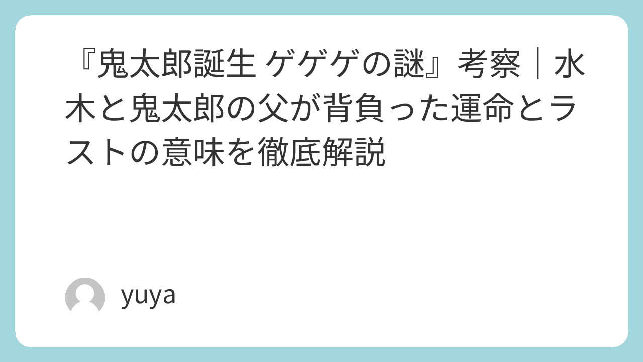 本記事では、『鬼太郎誕生 ゲゲゲの謎』のあらすじを整理しながら、水木と鬼太郎の父の関係性、哭倉村と龍賀一族が象徴するもの、「M」の正体、沙代の役割、そしてラストシーンに込められた意味まで詳しく考察していきます。