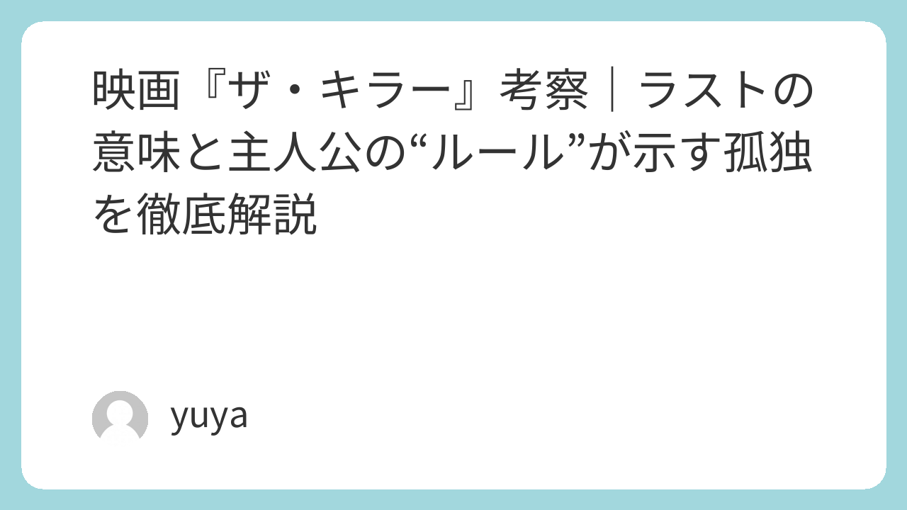 だからこそ本作は、単に“殺し屋の映画”では終わりません。現代社会において、自分の感情を切り離しながら仕事をこなし、効率や結果だけを追い求める人々への寓話としても読めます。主人公の姿は極端ですが、どこか私たち自身の働き方や生き方にも重なって見えるのです。