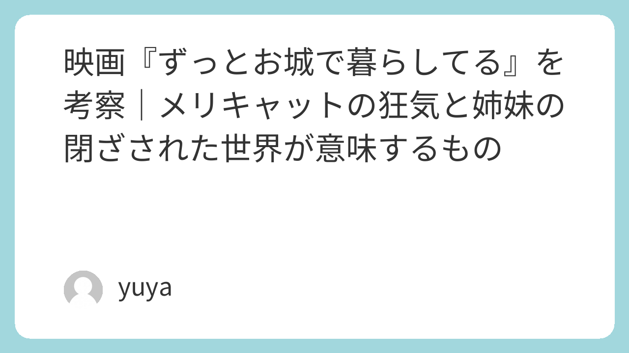 映画『ずっとお城で暮らしてる』は、一見すると静かなゴシック・ミステリーでありながら、その内側には孤独、排除、依存、そして狂気が複雑に絡み合う濃密な物語が隠されています。