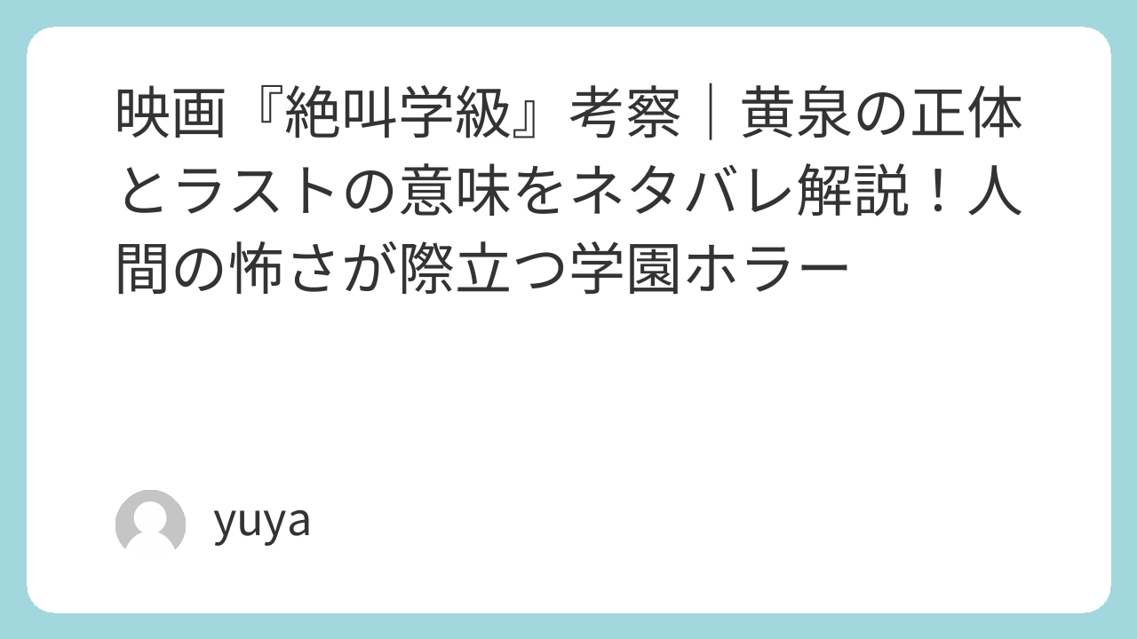 黄泉は最後まで、絶対悪として断罪される存在ではありません。むしろ彼女は、人間たちが自分で選び取った感情の行き着く先を見せる存在です。そのためラストは、「黄泉が怖い」のではなく、「黄泉を必要としてしまうほど追い詰められた学校社会こそが怖い」という後味を残します。ここが本作のホラーとしての強みであり、観終わったあとにじわじわ効いてくる理由です。