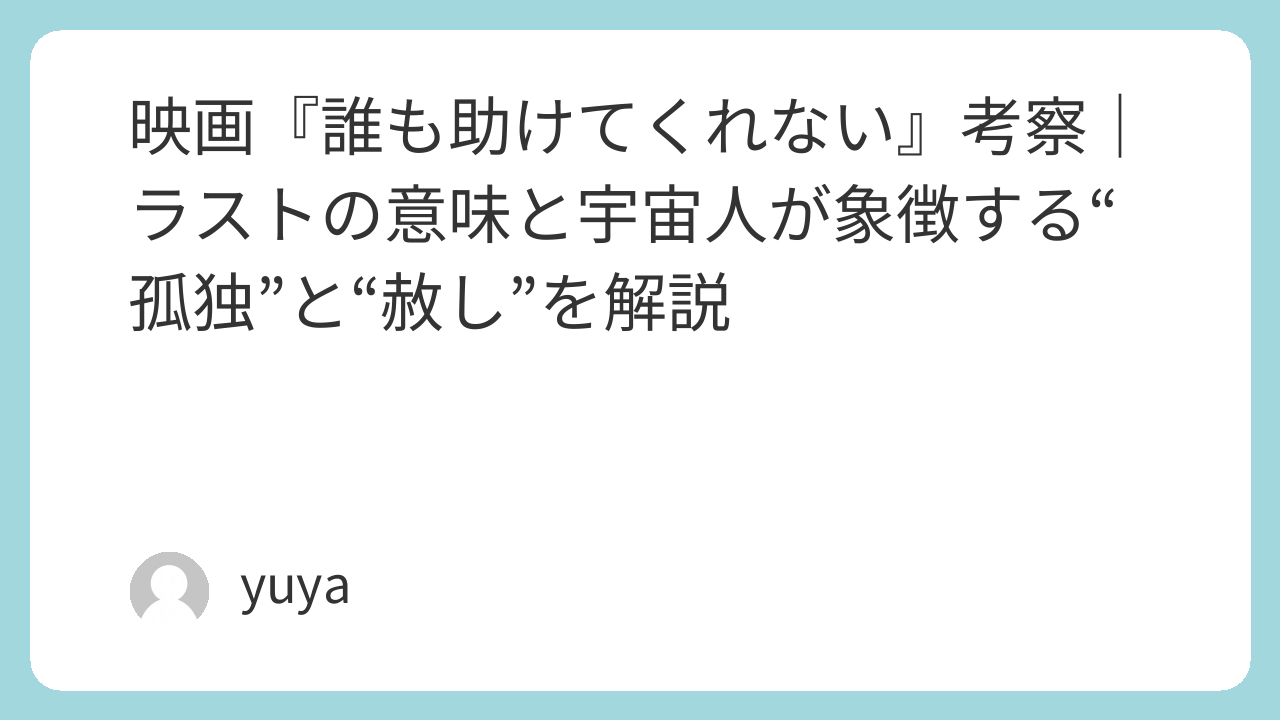 本記事では、『誰も助けてくれない』のあらすじや物語の背景を整理しながら、ラストシーンの意味、宇宙人の正体が象徴するもの、そしてタイトルに込められた本当のメッセージについて考察していきます。作品を観終えたあとに残る“あの違和感”の正体を、一緒にひも解いていきましょう。