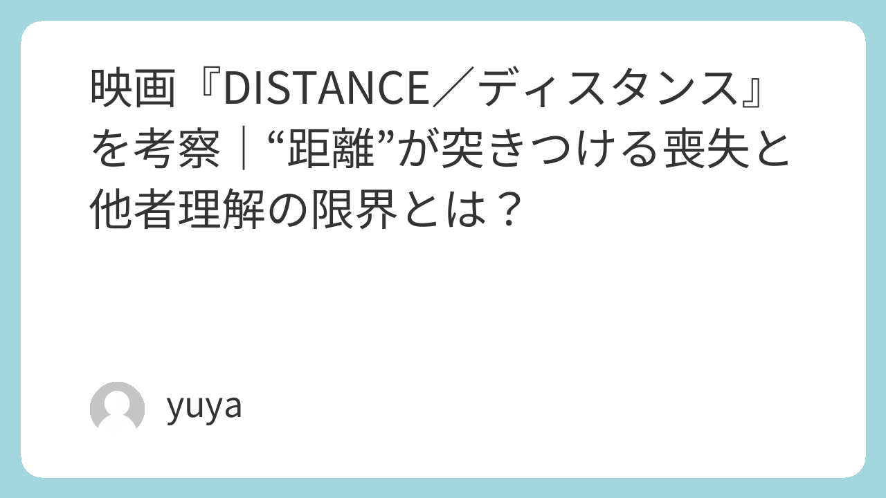 この記事では、映画『DISTANCE/ディスタンス』のあらすじやタイトルの意味、加害者遺族という視点の重さ、そしてラストに込められた余韻までを丁寧に考察していきます。