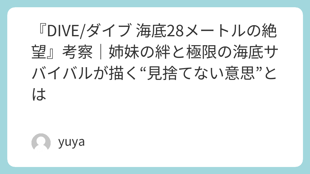 この記事では、『DIVE/ダイブ 海底28メートルの絶望』のあらすじや物語の構造を整理しながら、海底という閉ざされた空間が生む緊張感、姉妹ドラマの意味、そしてラストが何を描いていたのかを詳しく考察していきます。