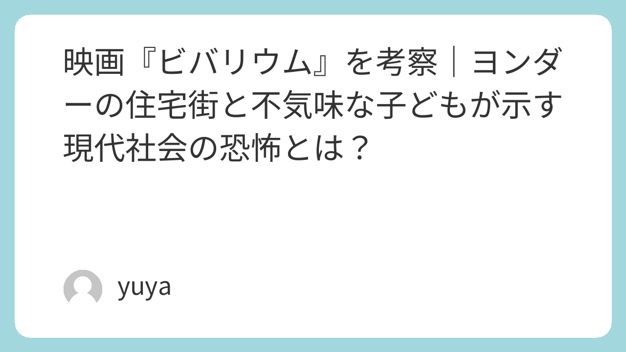 なぜ『ビバリウム』はこれほど不気味なのか。ヨンダーという空間は何を象徴し、ラストに描かれる終わらない循環は何を意味しているのか。この記事では、住宅街の意味、少年の正体、そして作品全体に流れる社会風刺の視点から、映画『ビバリウム』をじっくり考察していきます。