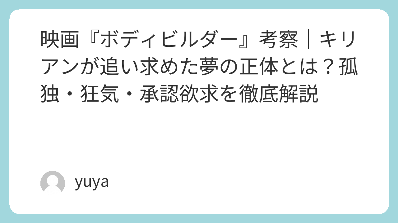 映画『ボディビルダー』考察|キリアンが追い求めた夢の正体とは?孤独・狂気・承認欲求を徹底解説