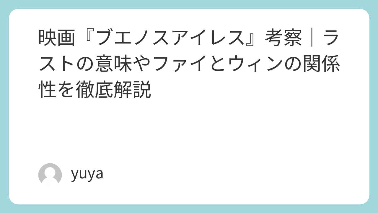 映画『ブエノスアイレス』考察|ラストの意味やファイとウィンの関係性を徹底解説