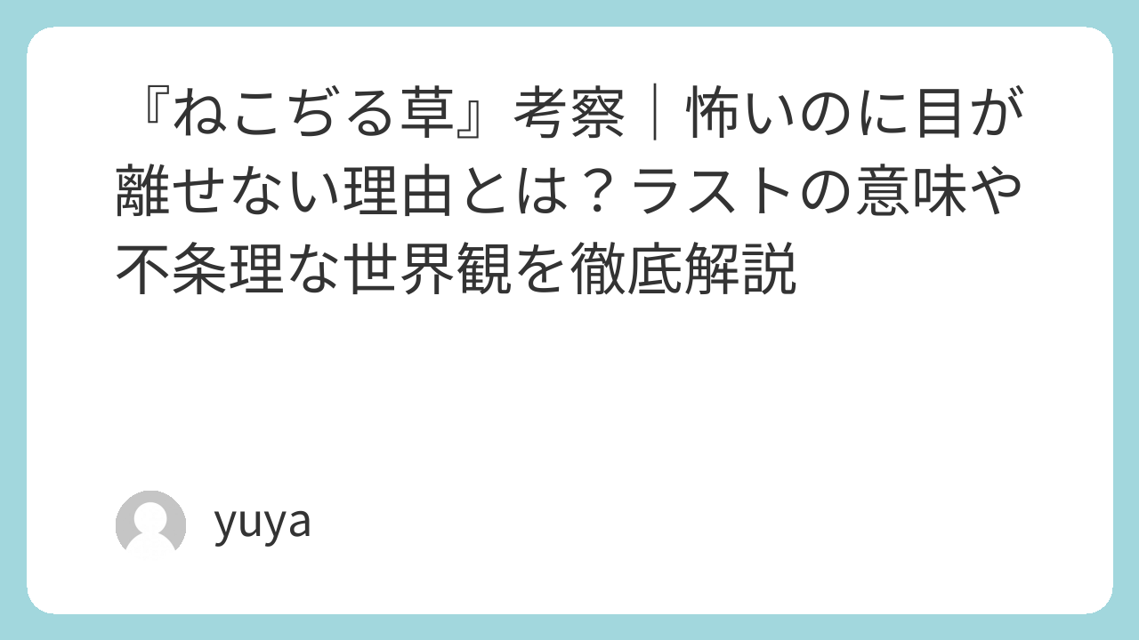本記事では、『ねこぢる草』の基本的なあらすじを整理したうえで、不条理な世界観の意味、にゃっ太とにゃーこの旅が象徴するもの、印象的なモチーフ、そしてラストシーンの解釈までわかりやすく考察していきます。『ねこぢる草』がなぜ今なお“怖いのに忘れられない作品”として語られ続けているのか、その理由を一緒に読み解いていきましょう。