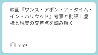 映画『ワンス・アポン・ア・タイム・イン・ハリウッド』考察と批評|虚構と現実の交差点を読み解く クエンティン・タランティーノが監督・脚本を務めた『ワンス・アポン・ア・タイム・イン・ハリウッド』(2019年)は、1969年のロサンゼルスを舞台にした“オルタナティブ・ヒストリー(もう一つの歴史)”映画です。実在の女優シャロン・テートと、彼... 2025.10.05 Uncategorized
