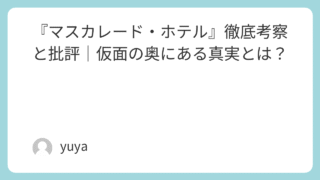 『マスカレード・ホテル』徹底考察と批評|仮面の奥にある真実とは? 2019年に公開された映画『マスカレード・ホテル』は、東野圭吾による同名小説を原作とし、木村拓哉と長澤まさみのダブル主演によって大きな話題を呼びました。一見すると王道の刑事×ホテル従業員のバディものの体裁をとりながらも、その実、ミステリとし... 2025.10.05 Uncategorized