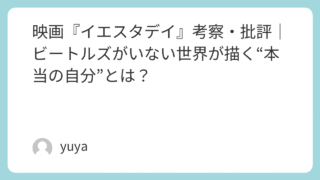 映画『イエスタデイ』考察・批評|ビートルズがいない世界が描く“本当の自分”とは? 「もし、あの伝説のバンド・ビートルズがこの世界に存在しなかったら?」そんな大胆な仮定を元に描かれた映画『イエスタデイ』は、単なる音楽ファンタジーではありません。記憶・文化・誠実さ・愛というテーマを巧みに織り込みながら、観る者に問いを投げかけ... 2025.10.05 Uncategorized