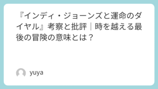 『インディ・ジョーンズと運命のダイヤル』考察と批評|時を越える最後の冒険の意味とは? スピルバーグとジョージ・ルーカスが生んだ冒険活劇の金字塔『インディ・ジョーンズ』シリーズ。その第5作となる『インディ・ジョーンズと運命のダイヤル』は、インディの“最終章”として多くのファンの期待と不安を背負って公開されました。本記事では、映... 2025.10.05 Uncategorized