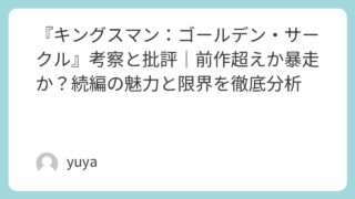 『キングスマン:ゴールデン・サークル』考察と批評|前作超えか暴走か?続編の魅力と限界を徹底分析 映画『キングスマン:ゴールデン・サークル』(2017)は、マシュー・ヴォーン監督によるスパイ・アクションシリーズの第2作です。前作『キングスマン』が英国紳士×過激アクションという斬新な世界観で話題をさらった中、続編はその期待に応える作品だっ... 2025.10.05 Uncategorized