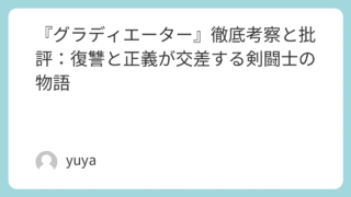 『グラディエーター』徹底考察と批評:復讐と正義が交差する剣闘士の物語 リドリー・スコット監督による2000年公開の歴史スペクタクル映画『グラディエーター』は、その壮大なスケールと重厚なドラマで多くの映画ファンを魅了してきました。アカデミー賞作品賞をはじめとする数々の賞を受賞した本作は、単なる剣闘士映画にとどま... 2025.10.06 Uncategorized