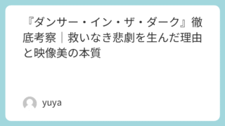 『ダンサー・イン・ザ・ダーク』徹底考察|救いなき悲劇を生んだ理由と映像美の本質 ラース・フォン・トリアー監督による映画『ダンサー・イン・ザ・ダーク』(2000年)は、世界中で強烈な賛否を巻き起こした問題作です。主演を務めたのは、アイスランド出身の音楽家・ビョーク。彼女が演じたセルマという女性の悲劇的な物語は、観る者に深... 2025.10.06 Uncategorized