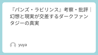 『パンズ・ラビリンス』考察・批評|幻想と現実が交差するダークファンタジーの真実 2006年に公開されたギレルモ・デル・トロ監督の映画『パンズ・ラビリンス』は、ファンタジーと歴史ドラマを融合させた異色の作品として、今なお世界中で高い評価を受けています。スペイン内戦後の暗い時代を背景にしながらも、少女オフェリアの幻想世界を... 2025.10.20 Uncategorized
