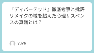 『ディパーテッド』徹底考察と批評|リメイクの域を超えた心理サスペンスの真髄とは? 2006年に公開されたマーティン・スコセッシ監督作『ディパーテッド(The Departed)』は、香港映画『インファナル・アフェア』のリメイク作品として誕生し、アカデミー賞作品賞をはじめ4冠に輝いた傑作です。一見すると犯罪サスペンスに見え... 2025.10.20 Uncategorized