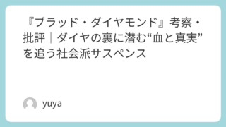 『ブラッド・ダイヤモンド』考察・批評|ダイヤの裏に潜む“血と真実”を追う社会派サスペンス 2006年に公開された映画『ブラッド・ダイヤモンド』は、単なるエンタメ映画ではありません。アフリカの内戦や資源紛争といった重たいテーマを背景に、エンターテインメント性の高いアクションとヒューマンドラマが見事に融合された作品です。本作は、視覚... 2025.10.20 Uncategorized