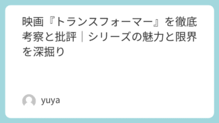 映画『トランスフォーマー』を徹底考察と批評|シリーズの魅力と限界を深掘り 「トランスフォーマー」と聞いて、多くの人が真っ先に思い浮かべるのは、あの迫力満点な変形シーンや、壮大なスケールのバトル映像でしょう。しかし、その背後には意外にも深い人間ドラマや社会的メッセージが隠されています。本記事では、シリーズ全体を通し... 2025.10.20 Uncategorized
