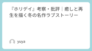 『ホリデイ』考察・批評|癒しと再生を描く冬の名作ラブストーリー 2006年公開のロマンティック・コメディ映画『ホリデイ(原題:The Holiday)』は、国も文化も異なる二人の女性が、人生に行き詰まった末に「家を交換する休暇」に出ることで、新たな愛と自己を再発見する物語です。キャメロン・ディアス、ケイ... 2025.10.20 Uncategorized