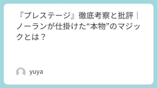 『プレステージ』徹底考察と批評|ノーランが仕掛けた“本物”のマジックとは? 映画『プレステージ』(2006)は、クリストファー・ノーラン監督による巧妙なサスペンス・ミステリーであり、マジシャン同士の競争という表層的なテーマの裏に、人間の執念、犠牲、そしてアイデンティティの問いが巧みに織り込まれています。観る者の思考... 2025.10.20 Uncategorized