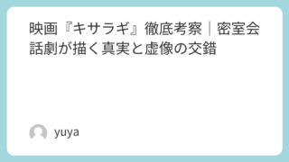 映画『キサラギ』徹底考察|密室会話劇が描く真実と虚像の交錯 2007年に公開された映画『キサラギ』は、アイドル・如月ミキの一周忌追悼会に集まった5人のファンたちが繰り広げる密室会話劇です。一見、シンプルで軽快なコメディのように見えながらも、物語が進むにつれて真実が徐々に明かされていく展開はスリリング... 2025.10.21 Uncategorized