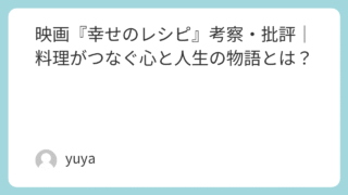 映画『幸せのレシピ』考察・批評|料理がつなぐ心と人生の物語とは? 「完璧な人生」って何だろう? そしてそれは、本当に“幸せ”なのだろうか。2007年に公開された映画『幸せのレシピ』(原題:No Reservations)は、仕事一筋で生きてきた女性シェフが、姪との生活や新しい同僚との関わりの中で、少しずつ... 2025.10.21 Uncategorized