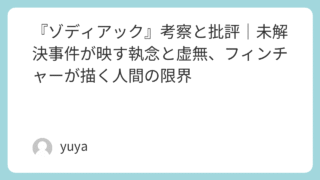 『ゾディアック』考察と批評|未解決事件が映す執念と虚無、フィンチャーが描く人間の限界 デヴィッド・フィンチャー監督による映画『ゾディアック』(2007年)は、1960〜70年代に実在した連続殺人事件「ゾディアック事件」を題材にした、極めて静かで緻密なサスペンス映画です。血なまぐさいシーンよりも、人間の執着や不安、日常が崩れて... 2025.10.21 Uncategorized