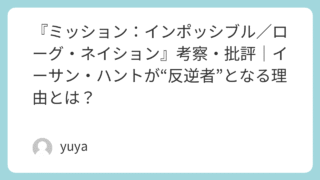 トム・クルーズ主演のスパイアクションシリーズ第5作『ミッション:インポッシブル/ローグ・ネイション』。本作は単なるアクション映画にとどまらず、国家や組織の信頼、正義とは何かを問いかける作品でもありました。この記事では、あらすじの構造分析、キ...