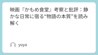 映画『かもめ食堂』考察と批評:静かな日常に宿る“物語の本質”を読み解く フィンランド・ヘルシンキの小さな食堂を舞台に描かれる映画『かもめ食堂』。日本からやってきた女性が異国の地で食堂を開き、そこに集まる人々との静かな交流を描いた本作は、一見すると「何も起こらない映画」と言われがちです。しかし、その穏やかな空気の... 2025.10.14 Uncategorized