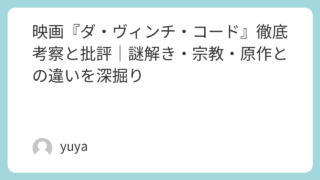 映画『ダ・ヴィンチ・コード』徹底考察と批評|謎解き・宗教・原作との違いを深掘り 2006年に公開された映画『ダ・ヴィンチ・コード』は、ダン・ブラウンの世界的ベストセラー小説を原作に、ロン・ハワード監督、トム・ハンクス主演で映画化されたミステリー大作です。カトリック教会や宗教的象徴を大胆に扱った内容により、賛否両論を巻き... 2025.10.14 Uncategorized