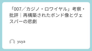 「007/カジノ・ロワイヤル」考察・批評|再構築されたボンド像とヴェスパーの悲劇 2006年公開の『007/カジノ・ロワイヤル』は、「ジェームズ・ボンド」というキャラクターを新たな次元に引き上げた作品として、多くの映画ファンに衝撃を与えました。本作は、シリーズ21作目でありながら、“原点回帰”とも呼ばれ、また同時に“再構... 2025.10.14 Uncategorized