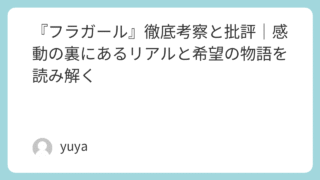 『フラガール』徹底考察と批評|感動の裏にあるリアルと希望の物語を読み解く 2006年に公開された映画『フラガール』は、実話をもとにした感動作として、日本映画史に深い印象を残しました。炭鉱町の衰退という厳しい現実を背景に、「フラダンス」という文化的に異なる手段で町を再生しようとする人々の姿は、多くの観客の心を打ちま... 2025.10.14 Uncategorized