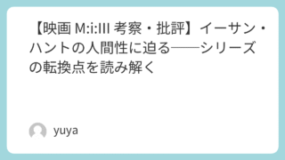 【映画 M:i:III 考察・批評】イーサン・ハントの人間性に迫る──シリーズの転換点を読み解く 2006年に公開された『M:i:III(ミッション:インポッシブル3)』は、スパイ・アクションという枠を超え、主人公イーサン・ハントの「人間的側面」に焦点を当てたエモーショナルな一作として評価されています。シリーズ初のJ.J.エイブラムス監... 2025.10.14 Uncategorized