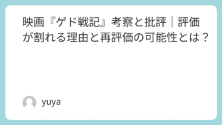 映画『ゲド戦記』考察と批評|評価が割れる理由と再評価の可能性とは? スタジオジブリが2006年に公開した映画『ゲド戦記』。宮崎吾朗監督のデビュー作でありながら、多くのジブリファンや原作読者の間で評価が大きく分かれる作品でもあります。本作はアーシュラ・K・ル=グウィンのファンタジー小説「ゲド戦記」シリーズを原... 2025.10.15 Uncategorized