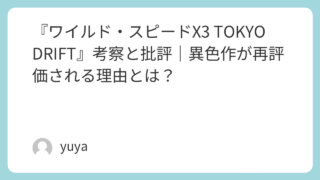 『ワイルド・スピードX3 TOKYO DRIFT』考察と批評|異色作が再評価される理由とは? 2006年に公開された『ワイルド・スピードX3 TOKYO DRIFT』は、シリーズの中でも異色の存在としてしばしば語られます。アメリカから離れ、舞台を東京に移したことで、シリーズの伝統とは異なる文化・美学・キャラクターが描かれ、当初は賛否... 2025.10.15 Uncategorized