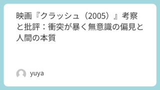 映画『クラッシュ(2005)』考察と批評:衝突が暴く無意識の偏見と人間の本質 2005年のアカデミー賞作品賞を受賞し、多くの論争と評価を呼んだポール・ハギス監督の映画『クラッシュ(Crash)』。ロサンゼルスという多民族都市を舞台に、複数の人物たちの人生が文字通り「衝突」していく様を描いた本作は、人種、差別、無意識の... 2025.10.15 Uncategorized