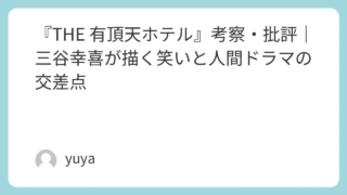 『THE 有頂天ホテル』考察・批評|三谷幸喜が描く笑いと人間ドラマの交差点 2006年に公開され、大ヒットを記録した三谷幸喜監督の映画『THE 有頂天ホテル』。元日を迎える高級ホテルを舞台に、数多くの人物たちの一夜を描いた群像劇は、軽妙なコメディとして笑いを誘いながらも、人間模様の機微や社会風刺など、多層的なテーマ... 2025.10.15 Uncategorized
