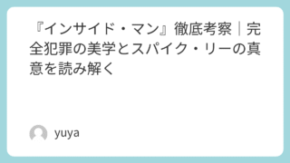 『インサイド・マン』徹底考察|完全犯罪の美学とスパイク・リーの真意を読み解く 「完全犯罪は可能なのか?」そんな問いかけに鮮やかに答えるのが、2006年公開のクライム・サスペンス映画『インサイド・マン』です。本作は、デンゼル・ワシントン、クライヴ・オーウェン、ジョディ・フォスターといった名優たちが豪華共演し、スパイク・... 2025.10.16 Uncategorized