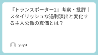 『トランスポーター2』考察・批評|スタイリッシュな過剰演出と変化する主人公像の真価とは? 2002年に公開された『トランスポーター』は、スタイリッシュなアクションと職業ドライバーという異色の主人公像で、瞬く間にアクション映画ファンを魅了しました。そしてその続編『トランスポーター2』(2005年)は、前作を遥かに上回るスケールとア... 2025.10.16 Uncategorized