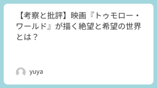 【考察と批評】映画『トゥモロー・ワールド』が描く絶望と希望の世界とは? 2006年に公開されたアルフォンソ・キュアロン監督による映画『トゥモロー・ワールド(原題:Children of Men)』は、SF作品でありながら、極めて現実的かつ政治的なメッセージ性を持ち、公開から十数年を経てもなお議論の尽きない名作で... 2025.10.16 Uncategorized