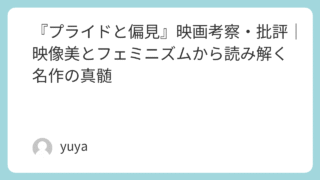 『プライドと偏見』映画考察・批評|映像美とフェミニズムから読み解く名作の真髄 2005年公開の映画『プライドと偏見』(原題:Pride & Prejudice)は、ジェーン・オースティンの同名小説を原作に、キーラ・ナイトレイ主演で描かれた珠玉のロマンス作品です。本作は単なるラブストーリーにとどまらず、当時の社会構造や... 2025.10.16 Uncategorized